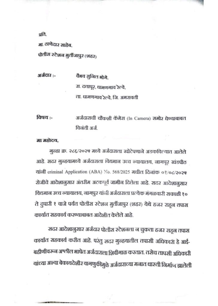 मा. उच्च न्यायालयाचा वारंवार अपमान करणारा मूर्तीजापुर शहर पोलीस स्टेशन चा पीएसआय आशिष शिंदे..