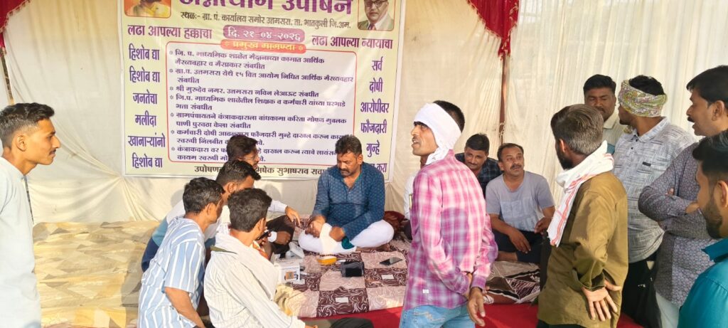 अमरावती : जिल्ह्यातील भातकुली तालुक्यातील उत्तमसरा गाव सध्या प्रचंड संतापाच्या ज्वाळांनी धगधगत असून ग्रामपंचायतीच्या कथित भ्रष्ट कारभाराविरोधात एका नवयुवकाने उभा केलेला लढा आता संपूर्ण विदर्भासाठी प्रेरणादायी ठरत आहे. 21 एप्रिलपासून अभिषेक सवाई हा तरुण ग्रामपंचायत कार्यालयासमोर आमरण उपोषणाला बसला असून दोन दिवसांपासून अन्नत्याग करून तो अन्यायाविरोधात झुंज देत आहे. त्याच्या आरोपांनी संपूर्ण प्रशासन यंत्रणेची झोप उडवली असून गावात संतापाची लाट उसळली आहे.